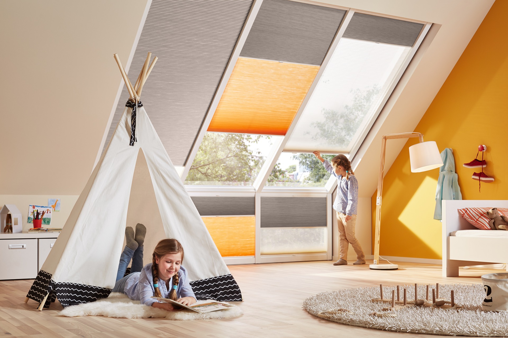 možnost stahování shora i zespodu – flexibilní regulace světla, široká paleta barev a vzorů, vhodné i pro atypická okna – trojúhelníková, oblouková, střešní.