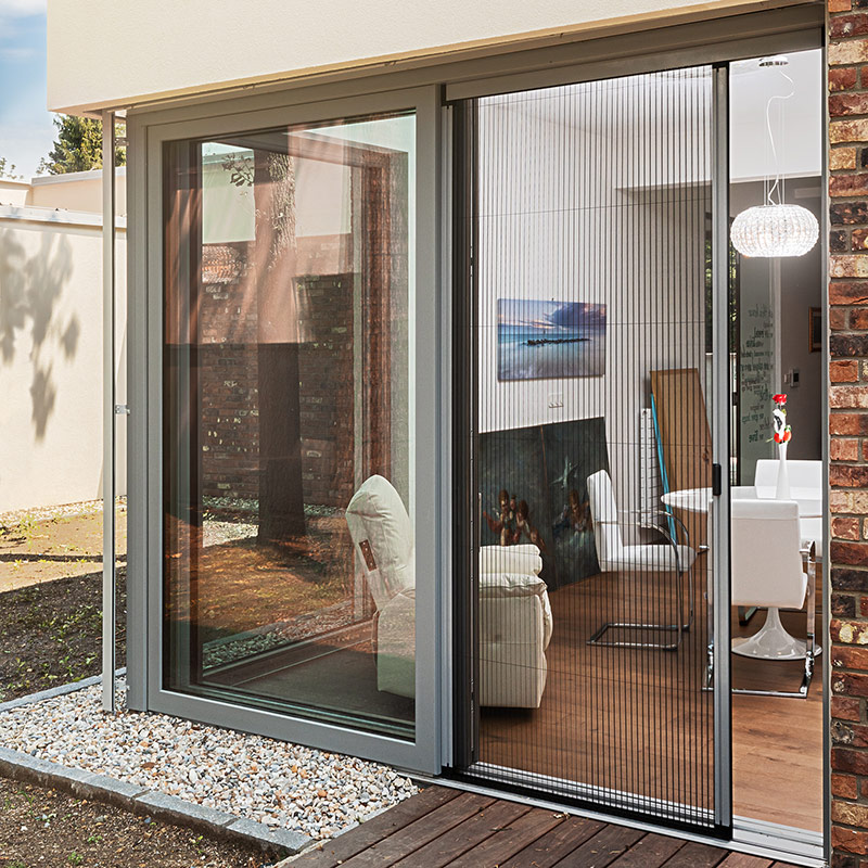 Plisované sítě: Tyto sítě mají skládací tkaninu ve tvaru harmoniky, která se skládá na stranu při otevírání. Jsou vhodné pro větší dveře či okna, kde není dostatek místa pro klasické posuvné sítě. Plisovaný systém je lehký, elegantní a esteticky působí moderně. Navíc umožňuje plynulé a tiché ovládání.